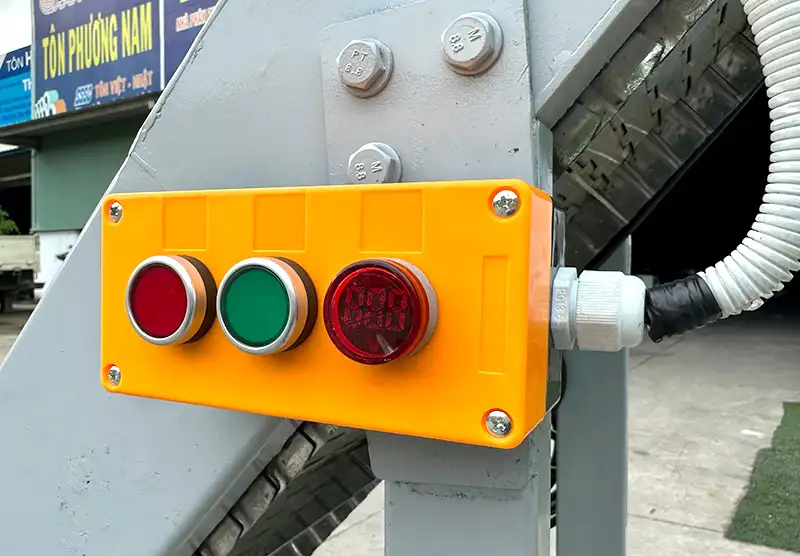 Băng tải sử dụng động cơ 1,5kw nguồn điện 3 pha. Hệ thống này đảm bảo sự hoạt động liên tục và ổn định của vít tải.
