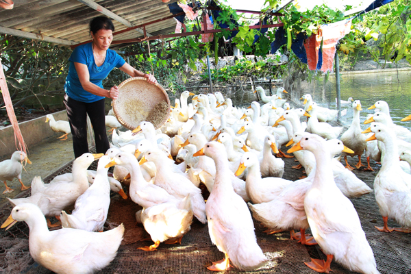 Bà con sử dụng Máy xay đa năng sắt của Công ty Bình Quân, máy giúp bà con nghiền những hạt ngô, hạt đỗ tương, sắn khô thành mảnh nhỏ (là loại hình dạng thức ăn ngan thích).