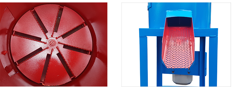 Đặc biệt, máy tách hạt ngô buồng đứng được thiết kế đĩa xoay bánh răng. Các gai được hàn trên đĩa xoay làm việc, tách hạt ngô ra khỏi lõi, đẩy thành phẩm qua các đường rãnh trên tấm đĩa xuống khay lỗ ra ngoài. Máy tách hạt ngô ra khỏi lõi nhanh, sạch mày. Hạt ngô sau khi tách không bị dập nát, lõi ngô không bị gãy. Tỷ lệ đạt 98%.