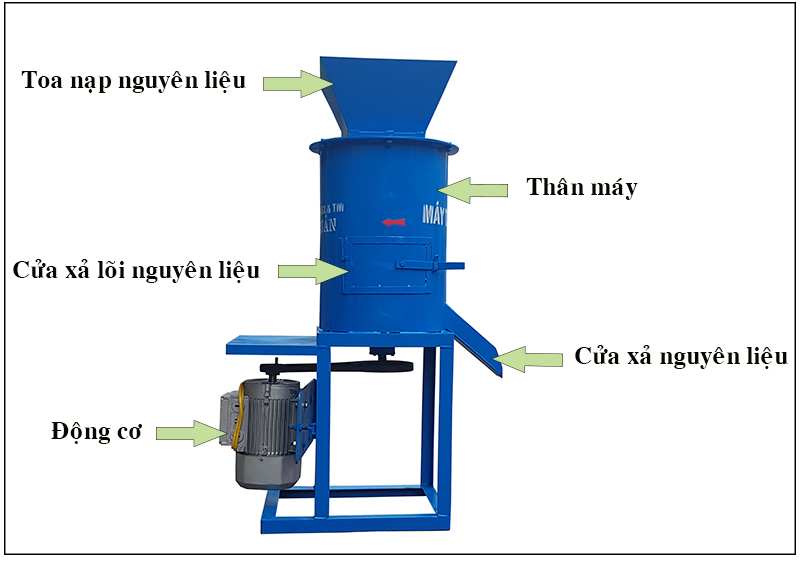 - Từ từ đưa nguyên liệu vào máng nạp.