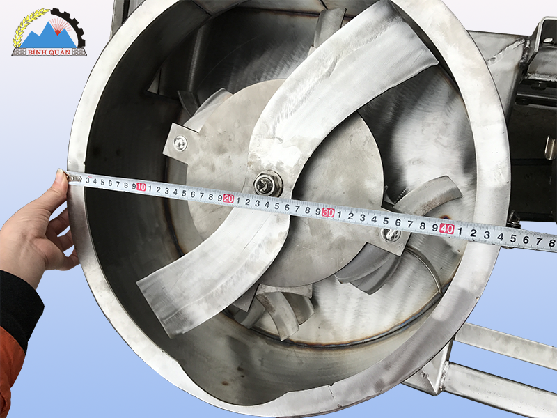- Hệ thống dao băm sắc bén gồm 1 dao to 2 lưỡi, 14 dao nhỏ inox và 2 thanh gạt giúp máy làm việc hiệu quả, băm nhuyễn được 2-3 thân chuối trong 1 phút mà không cần chẻ nhỏ.