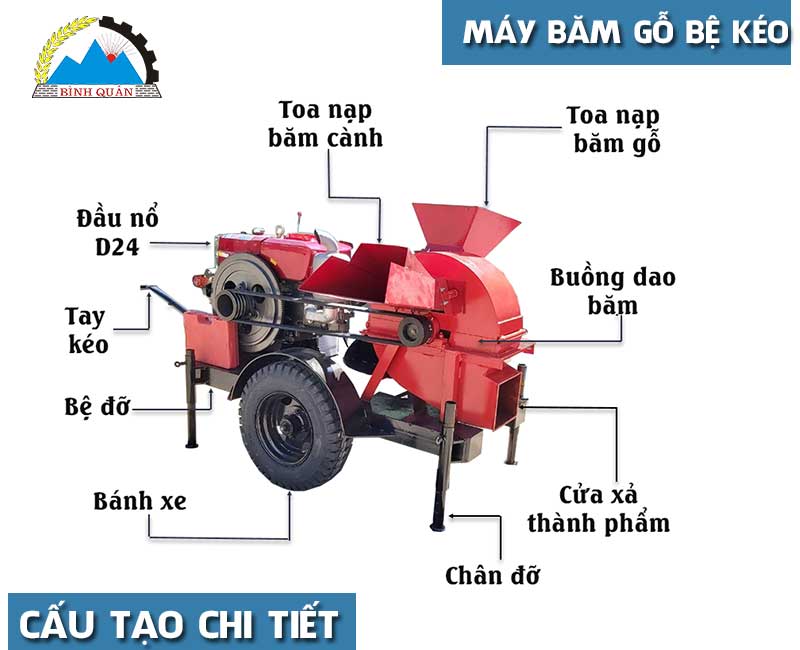 Cấu tạo máy băm gỗ 2T bệ kéo