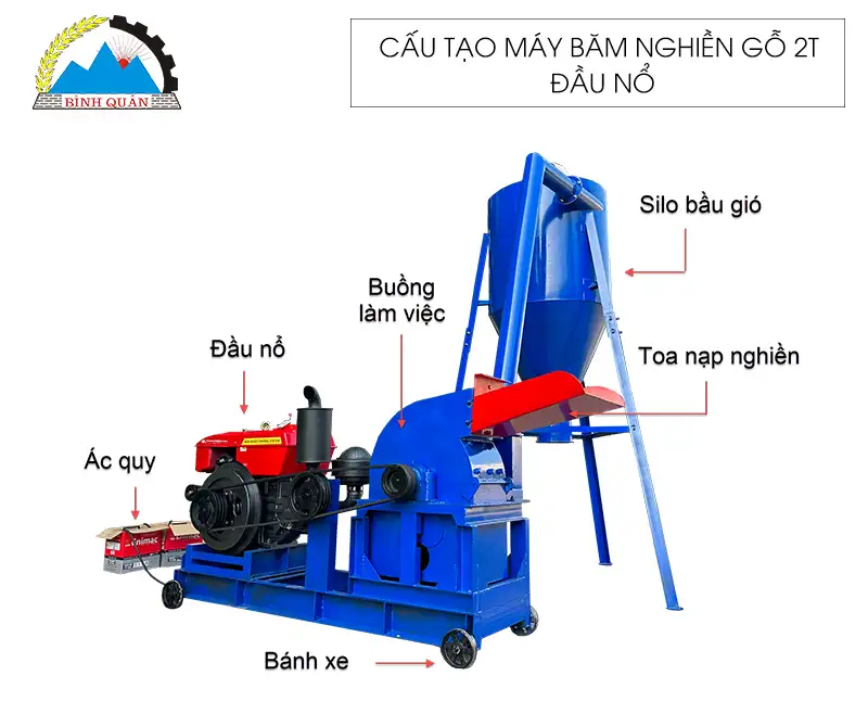 Máy băm nghiền gỗ 2T đầu nổ do công ty Bình Quân sản xuất - giải pháp hiệu quả cho việc tận dụng tối đa nguồn gỗ thải trong sản xuất