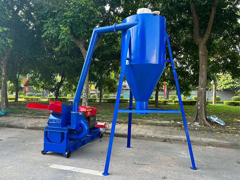 Thành phẩm sau khi nghiền sẽ được cánh quạt thổi đưa qua bầu hút gió. Bầu giúp hút thành phẩm đã nghiền rồi đưa xuống cửa xả nhanh chóng