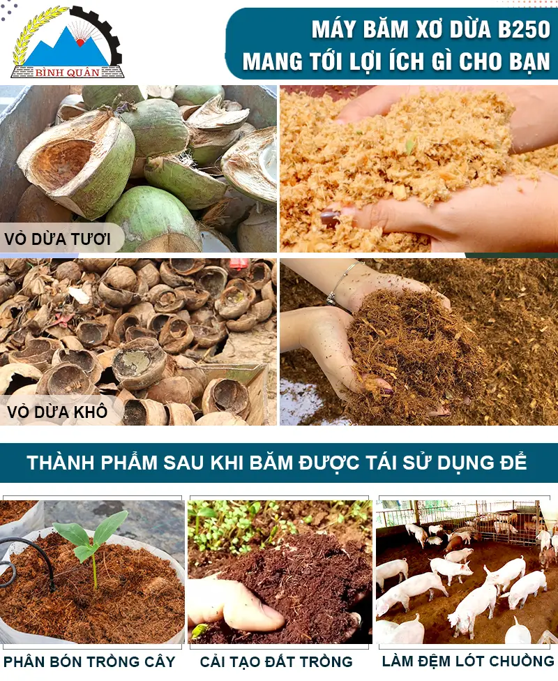 Vì sao nên dùng máy băm xơ dừa B250