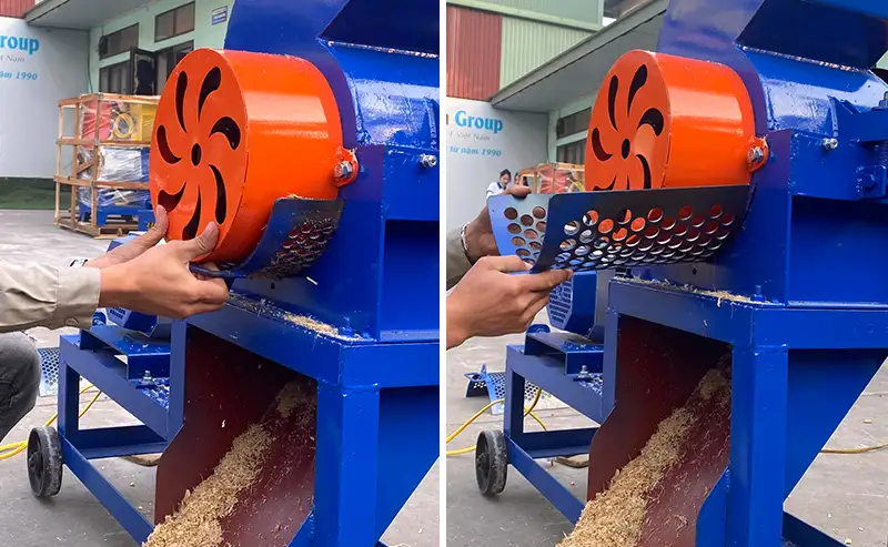 Mặt sàng lắp bên dưới buồng băm giúp cho nguyên liệu sau đạt kích thước nhỏ đồng đều.