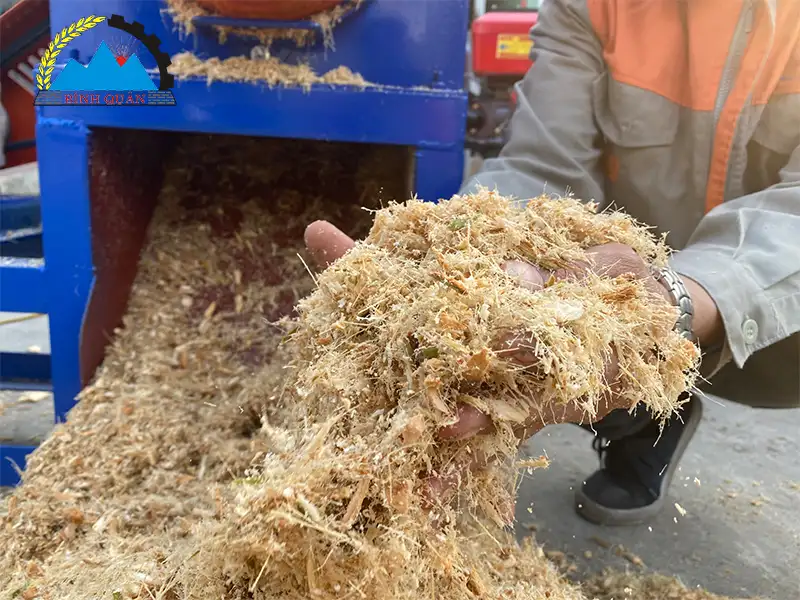 Thành phẩm sau khi băm được đưa trực tiếp ra ngoài cửa xả. Phần cửa được thiết kế lớn thuận tiện trong quá trình thu gom thành phẩm