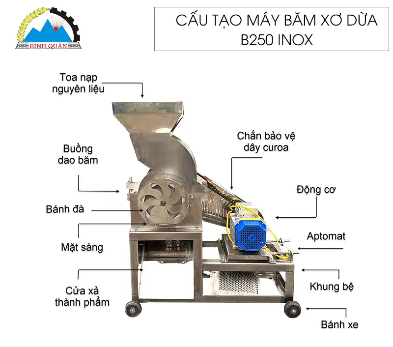 Nếu bạn đang tìm kiếm một công cụ bền bỉ và hiệu quả hỗ trợ quá trình chế biến nông sản, máy băm xơ dừa B250 inox do công ty Bình Quân sản xuất là sự lựa chọn không thể bỏ qua