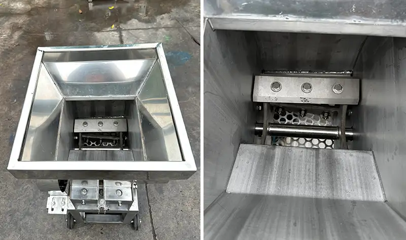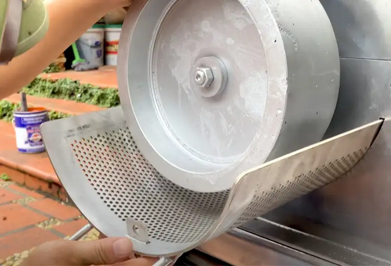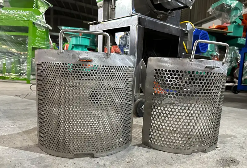 Thành phẩm sau khi được băm nhỏ sẽ đi qua lỗ sàng rồi thoát ra ngoài cửa xả