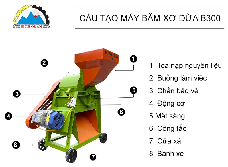 Hướng dẫn cách sử dụng máy băm xơ dừa B300