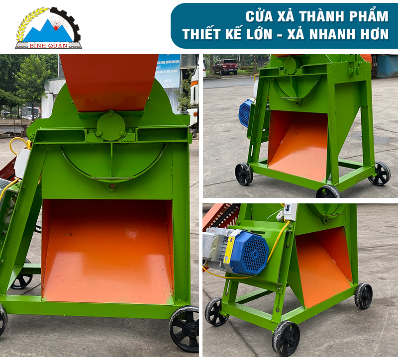 Phần cửa xả kích thước mặt rộng và độ dốc cao giúp thành phẩm sau khi băm đi xuống trực tiếp mà không bị đọng trong máy