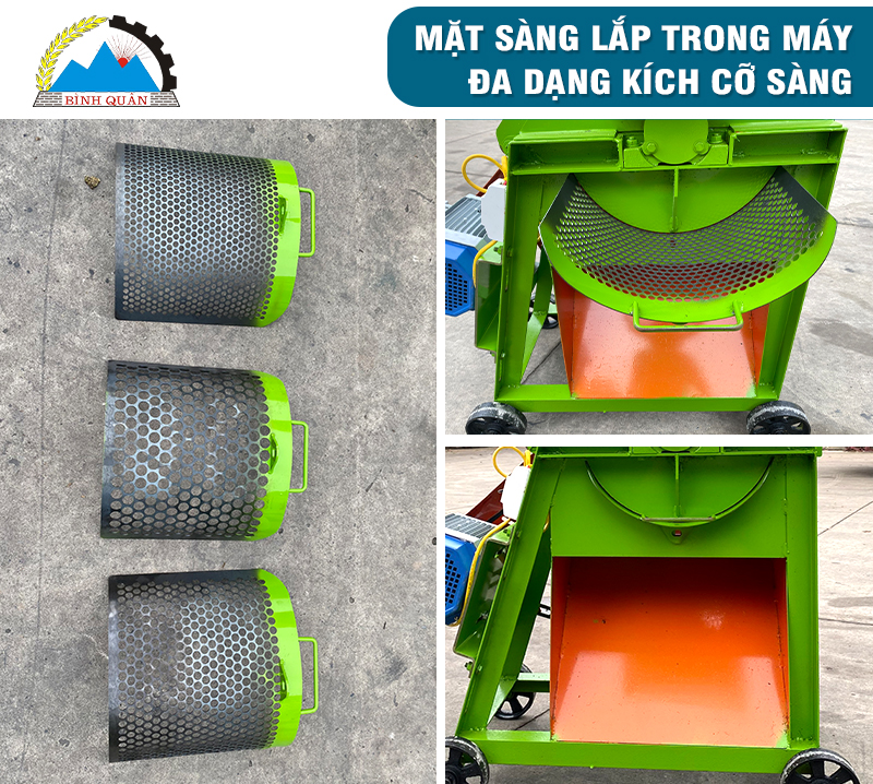 Kết hợp với 1 mặt sàng lỗ được gắn ngay phía dưới buồng băm, với các mặt sàng kích thước đa dạng giúp cho thành phẩm sau khi băm đạt tiêu chuẩn