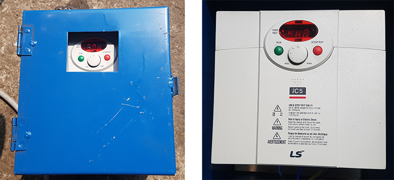 Máy sử dụng động cơ giảm tốc 3 pha 0.75kW, cho năng suất 70-80 kg/h. Ngoài ra, các gia đình dùng điện dân dụng 220Vcó thể sử dụng máy bằng cách lắp hộp biến tần 600 vòng/phút. Thiết kế máy gọn, dễ lắp đặt và di chuyển.