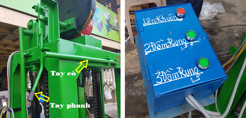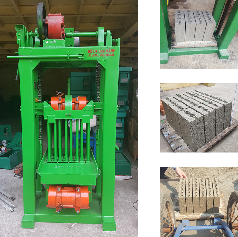 - Máy đóng gạch: có nhiệm vụ tạo hình khuôn và đóng ép viên gạch.