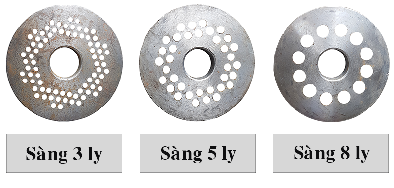 Máy có thể lắp các mặt sàng khác nhau (3,5,8 ly), cho ra viên cám có kích thước to nhỏ tùy theo yêu cầu của người sử dụng. Thiết kế máy nhỏ, gọn, khung máy chắc chắn, hạn chế rung khi vận hành. Đặc biệt, máy đùn cám viên nhỏ được trang bị đầu cắt, giúp máy cho ra viên cám cỡ nhỏ, có độ dài từ 1-2mm.