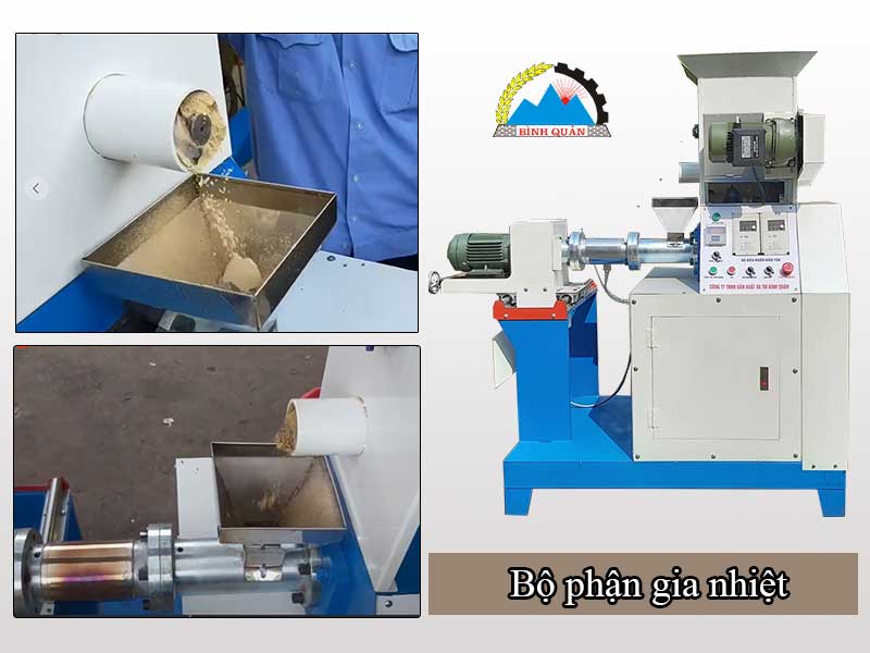 – Trục gia nhiệt làm nóng với nhiệt độ tiêu chuẩn làm ra viên cám nổi là từ 110 – 120 độ C đảm bảo được độ chín của viên cám.