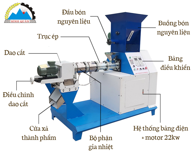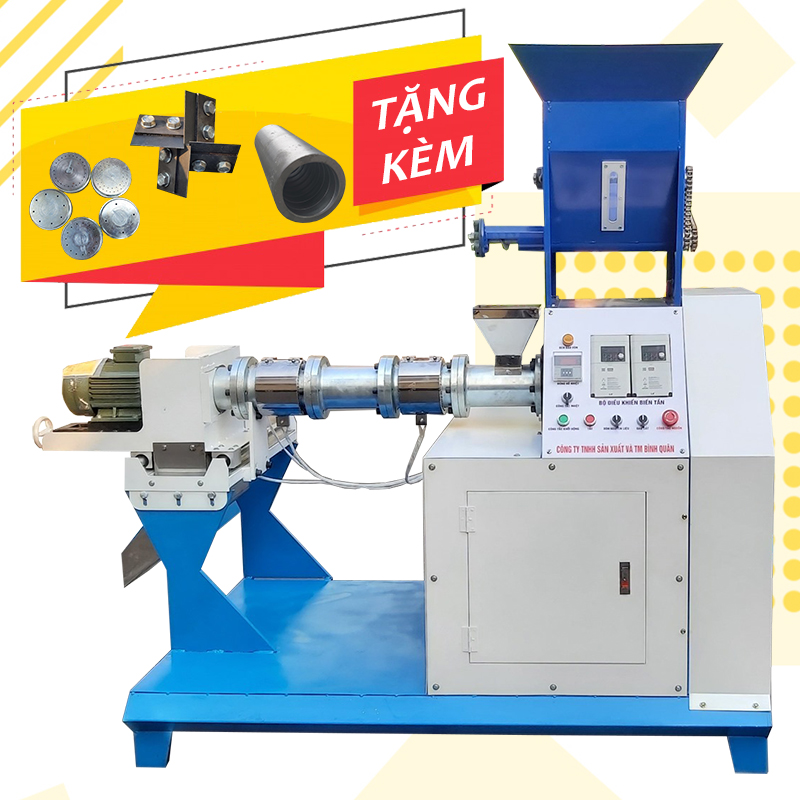 Hiện nay, thức ăn là yếu tố quan trọng quyết định năng suất chăn nuôi. Tuy nhiên trước tình hình giá thành thức ăn bán sẵn tăng cao khiến bà con chăn nuôi gặp nhiều khó khăn. Hiểu được điều đó, Công ty Bình Quân đã chế tạo ra dòng máy đùn viên thức ăn chăn nuôi 150K giúp tự chế biến viên cám nổi - chín 100% làm thức ăn cho thủy sản.