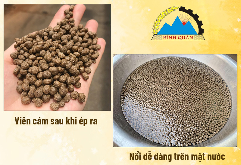 - Viên cám ép ra nổi hoàn toàn trên mặt nước giúp tôm, cá dễ dàng tiêu hóa và bà con có thế theo dõi được lượng thức ăn.