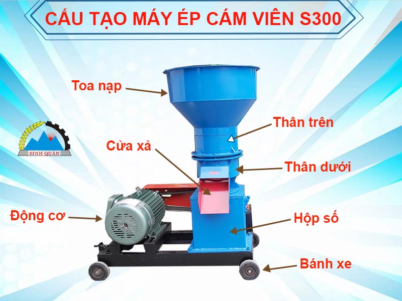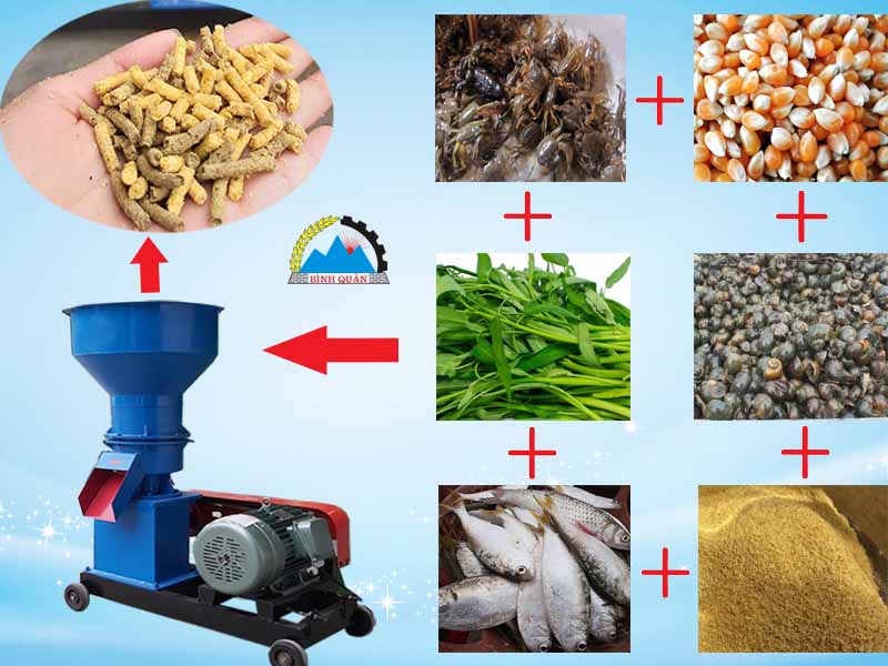 Hiểu được tầm quan trọng của thức ăn trong chăn nuôi, Công ty Bình Quân đã chế tạo và sản xuất ra dòng máy ép cám viên S300 tích hợp 3 tính năng nghiền - trộn - ép. Chiếc máy này sẽ giúp bà con tự làm ra viên cám và chủ động được thành phần dinh dưỡng trong thức ăn cho đàn vật nuôi.