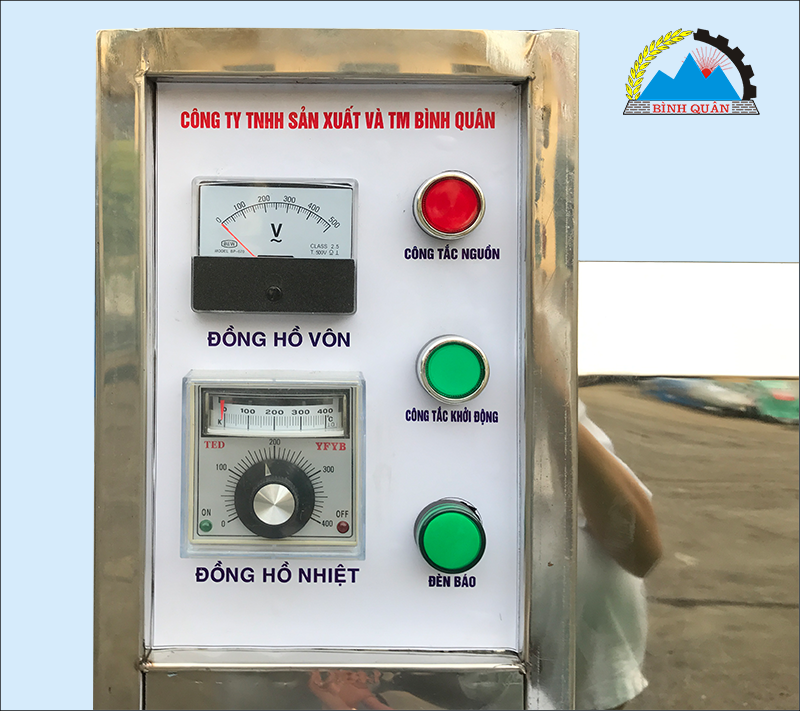 Máy được trang bị bảng điều khiển gồm: Công tắc nguồn, công tắc khởi động, đèn báo hoạt động, đồng hồ nhiệt và đồng hồ vôn, tiện lợi cho người sử dụng chỉnh nhiệt phù hợp.