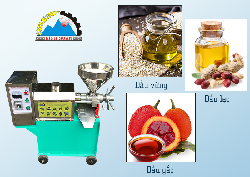 - Máy ép kiệt các hạt lạc (đậu phộng), vừng, đậu tương, gấc xay nhỏ thành dầu thực vật nguyên chất.