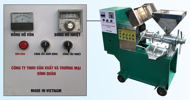 Trang bị bảng điều khiển thông minh, tiện ích gồm các công tắc khởi động, công tắc nhiệt, đồng hồ vôn, đồng hồ nhiệt giúp người dùng dễ dàng theo dõi cũng như điều chỉnh nhiệt độ phù hợp với từng nguyên liệu ép lấy dầu.