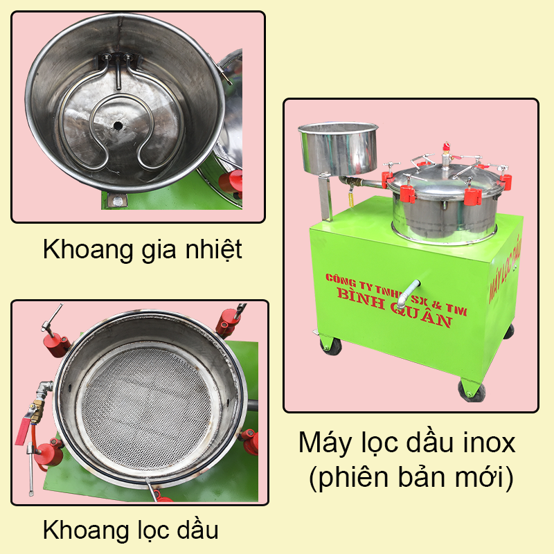 Mới đây, Công Ty TNHH Sản Xuất & Thương Mại Bình Quân đã thiết kế dòng máy lọc dầu thực vật (phiên bản mới) được làm hoàn toàn bằng chất liệu inox cao cấp.