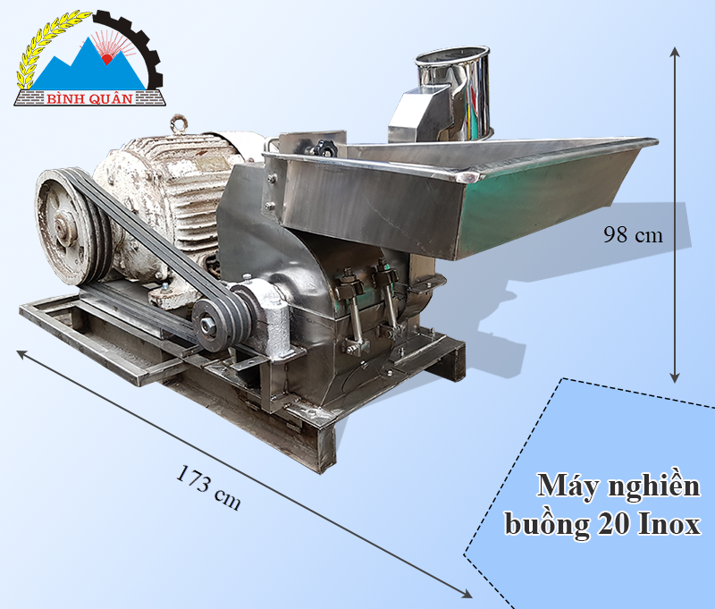 Máy nghiền buồng 20 Inox là dòng máy chế biến thực phẩm mới được Công ty Bình Quân cải tiến và nâng cấp từ dòng máy nghiền trước đó với thiết kế hoàn toàn bằng chất liệu Inox chống gỉ.