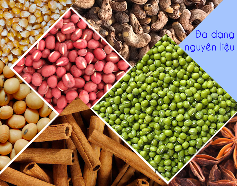 - Ngô, đỗ, gạo, tinh bột nghệ… cả những loại ngũ cốc thành phần chứa nhiều tinh dầu: macca, hạnh nhân, óc chó, vừng,… mà không lo bị bó máy.