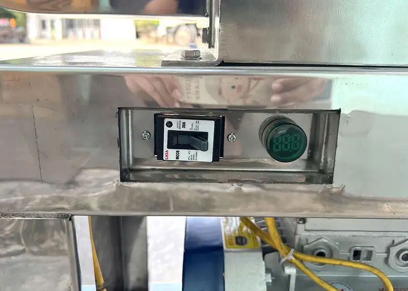 Quá trình máy hoạt động thông qua công tắc aptomat, công tắc được lắp bên khung bảo vệ mạch điện ngăn các trường hợp quá tải, sụt áp và chống giật đảm bảo an toàn cho người dùng