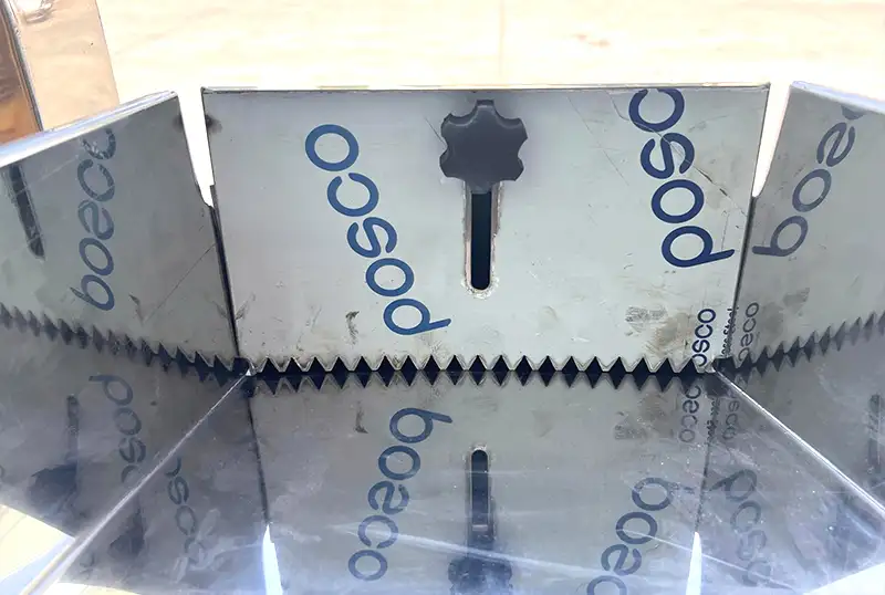 Phía trước cửa nạp có tấm ngăn, cho phép người dùng điều chỉnh lượng nguyên liệu đi vào buồng nghiền