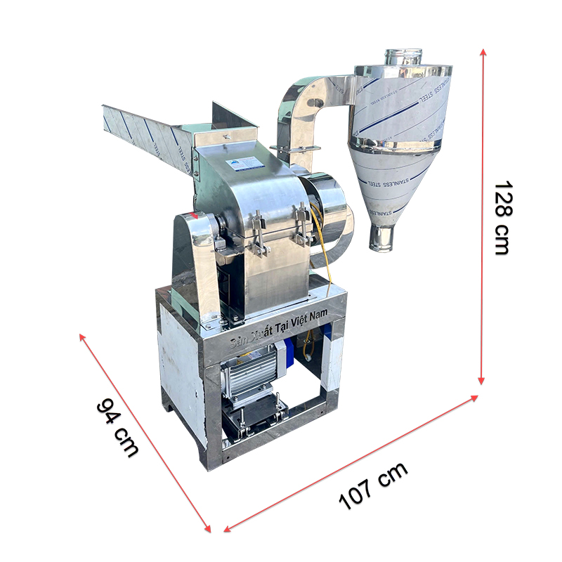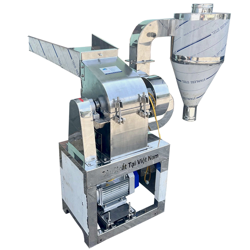 Máy nghiền bột được làm bằng inox cao cấp không gây han gỉ đảm bảo vệ sinh an toàn thực phẩm, với phần khung máy được hàn gắn chắc chắn không gây rung lắc trong quá trình vận hành