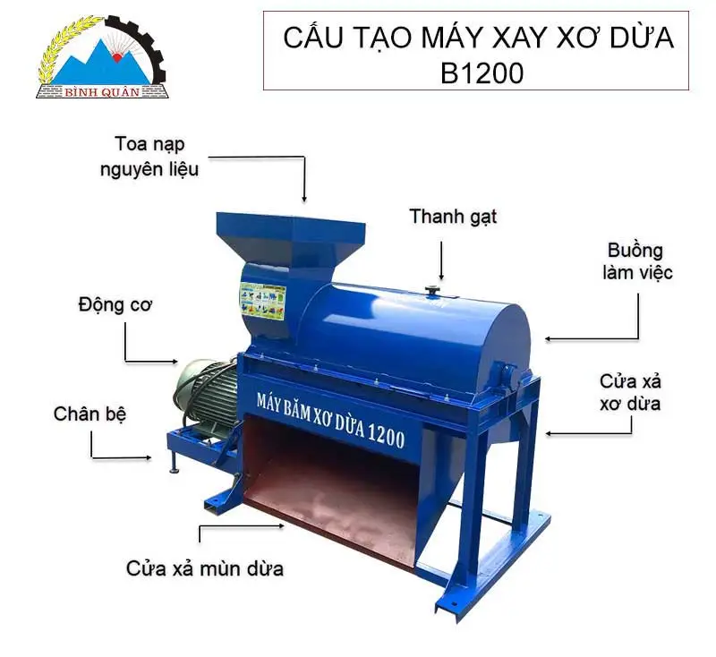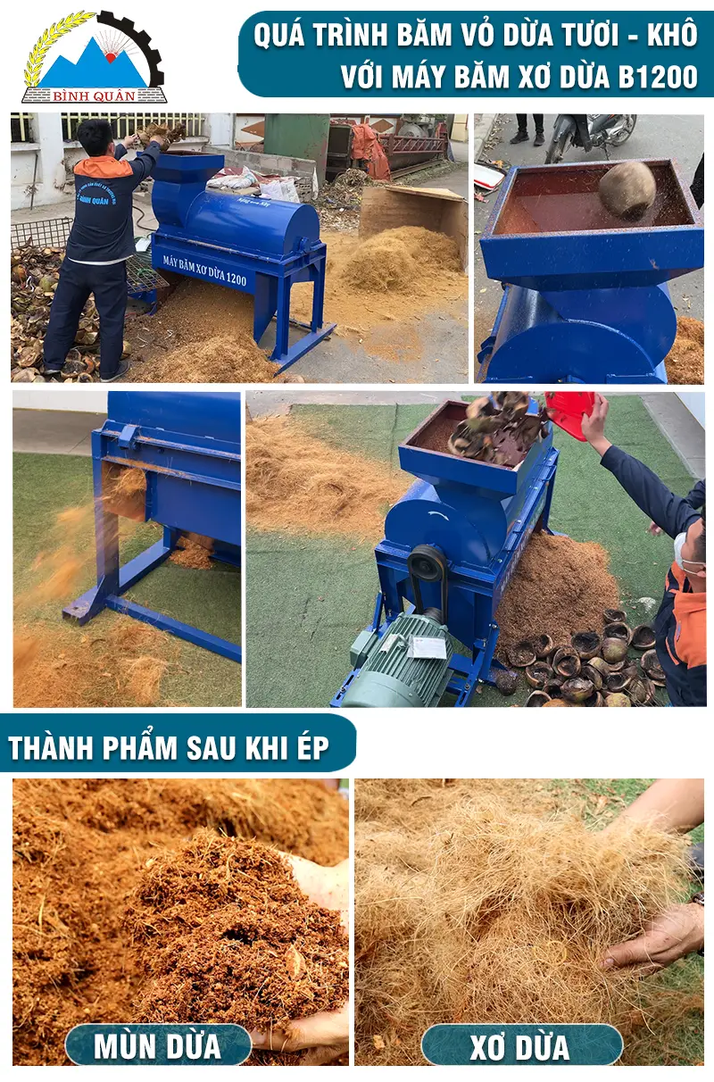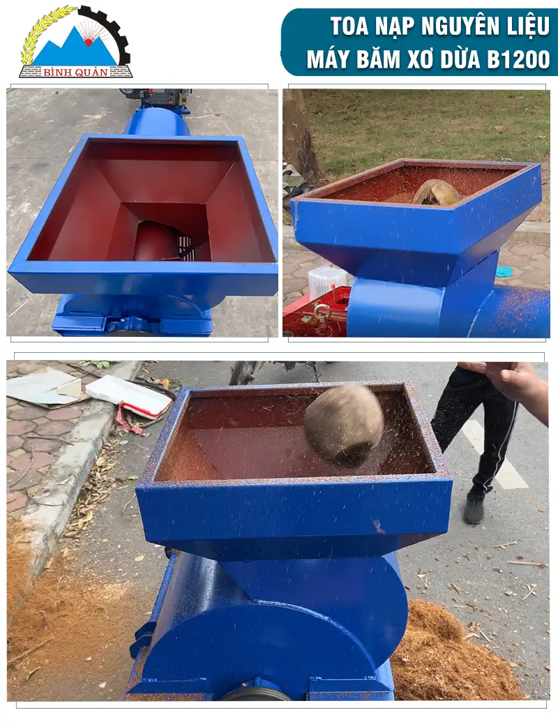 Nhằm giải quyết vấn đề trên, công ty Bình Quân chế tạo và sản xuất máy băm xơ dừa B1200