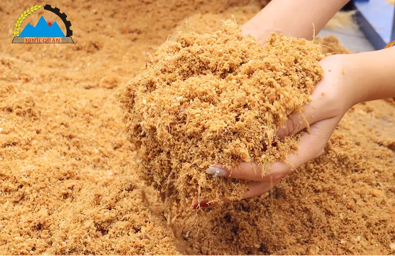 - Mùn dừa sẽ qua lỗ sàng đi xuống cửa xả trước