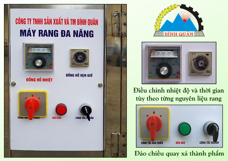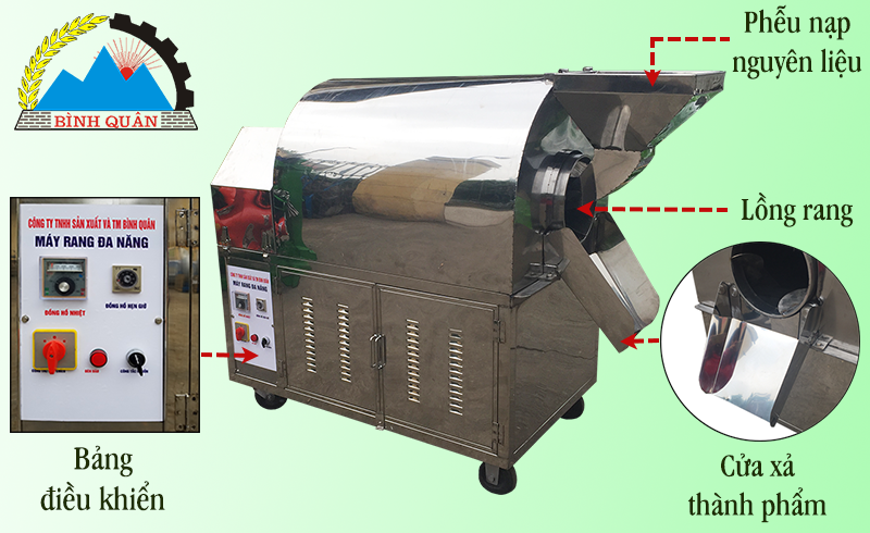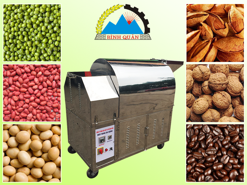 - Tính năng : Máy sử dụng để rang hạt nông sản, hạt ngũ cốc số lượng lớn chín đều nhanh chóng, cho năng suất cao.