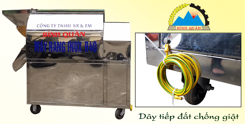 - Để đảm bảo an toàn cho người sử dụng, máy rang R40 đã được trang bị thêm aptomat chống giật và dây nối đất.