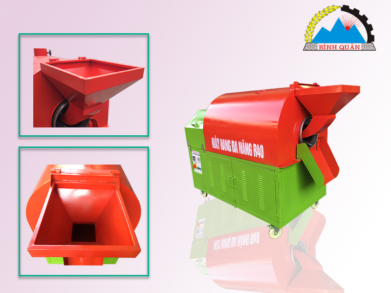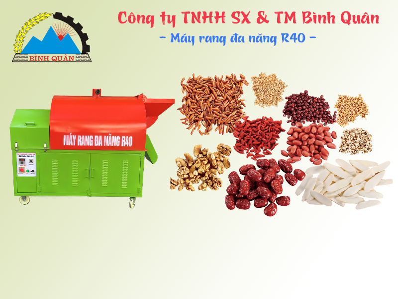 Ngày nay, nhu cầu chế biến, sản xuất hạt đóng gói ngày càng tăng cao nên máy rang là một công cụ sản xuất không thể thiếu giúp bà con tiết kiệm tối đa thời gian và công sức. Máy rang đa năng R40 của Công ty Cơ khí Bình Quân là dòng sản phẩm được cả tiến với dung tích lồng rang to hơn, cho năng suất cao phù hợp với hộ kinh doanh, cơ sở sản xuất vừa/lớn.