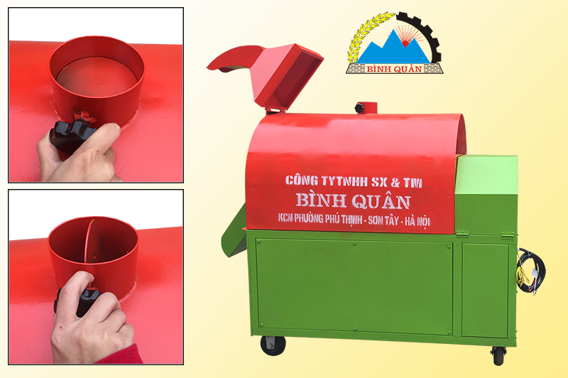 - Khi hạt đã chín, vặn công tắc đảo chiều để xả thành phẩm ra ngoài.