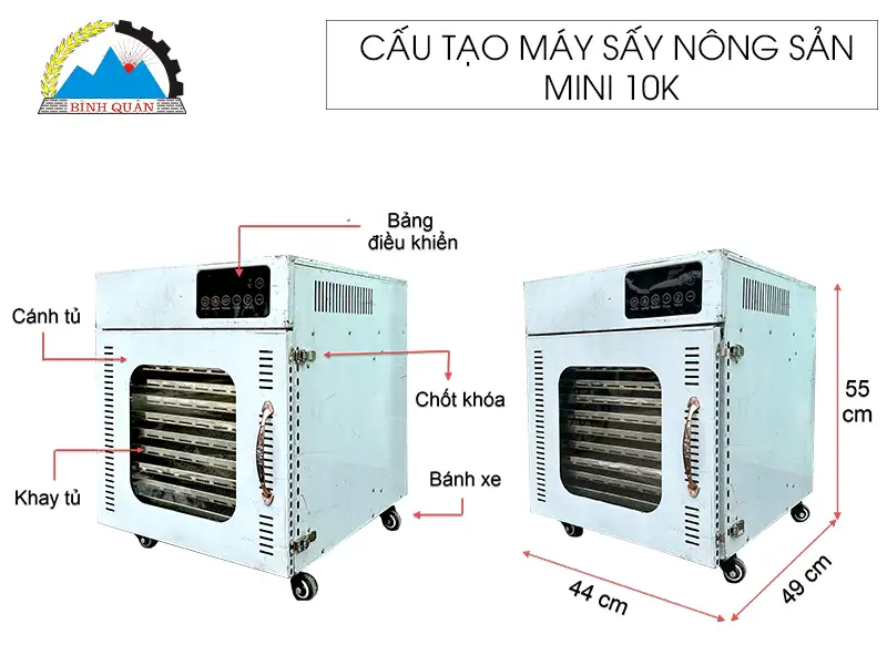 Máy sấy nông sản mini 10L do công ty Bình Quân sản xuất - thiết bị sấy khô tiên tiến và hiệu quả hàng đầu hiện nay, được các khách hàng - đối tác - chủ cơ sở chế biến tin dùng