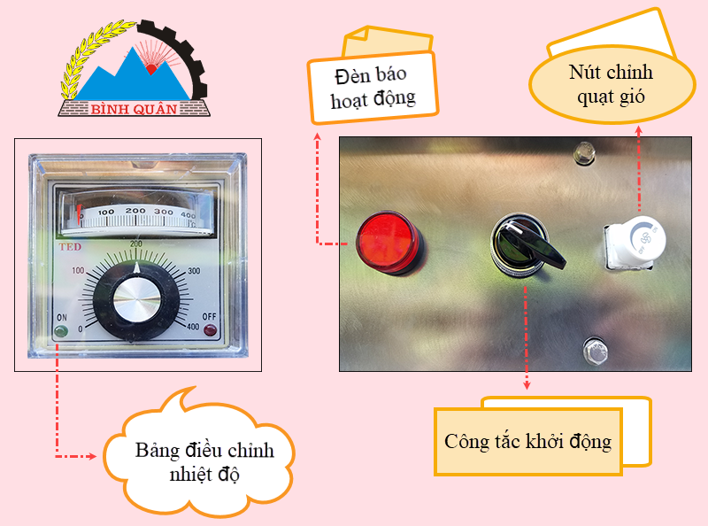 - Sử dụng 20 bóng đèn nhiệt 200W, 4 cửa thông gió và 2 quạt hút.
