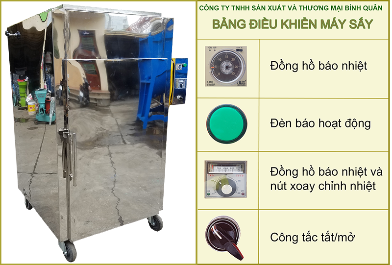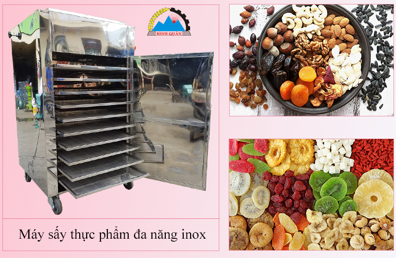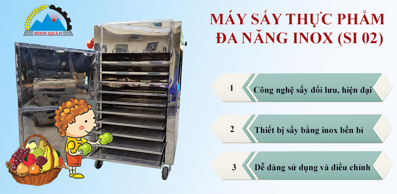 Với những cơ sở chế biến, sản xuất đồ khô, máy sấy là một thiết bị quan trọng. Hiện nay, trên thị trường, máy sấy thực phẩm đa năng inox (SI - 02) do Công Ty TNHH Sản xuất và Thương mại Bình Quân chế tạo, phân phối được rất nhiều bà con tin dùng. Sản phẩm được thiết kế hiện đại, mang những tính năng ưu việt của công nghệ mới, đáp ứng mong muốn của bà con về giá thành, chất lượng cũng như chế độ bảo hành.