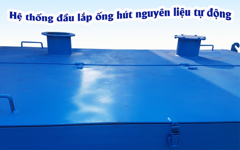 Một trong những thiết kế tân tiến của máy trộn ngang 2000 lít là hệ thống nạp nguyên liệu dạng ống hút hoàn toàn tự động, đưa nguyên liệu từ ngoài vào trong buồng trộn nhanh chóng mà không tiêu tốn sức người.